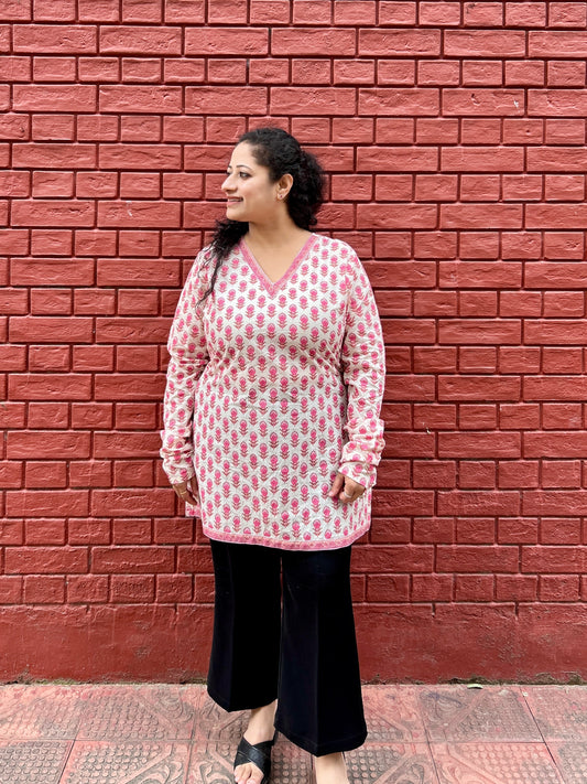 4.8 ★Blush Pink Hand-Block Printed Cotton Kurti