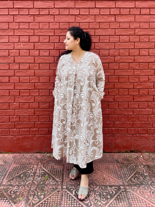 Beige A line kurta with pockets✨