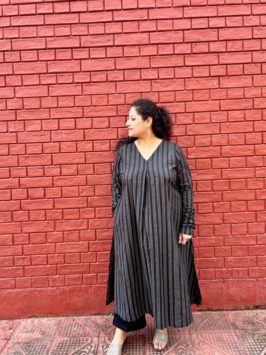 Black Vertical Stripe A line Kurta