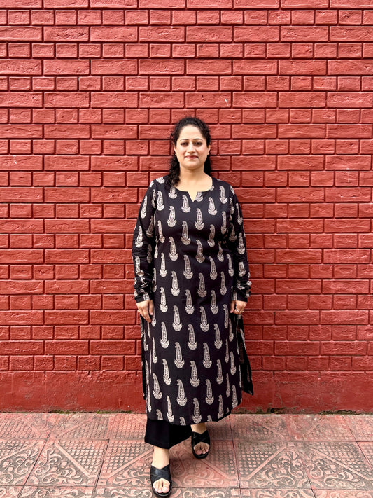 4.6 ★Black Ajrakh Chudi sleeve Top