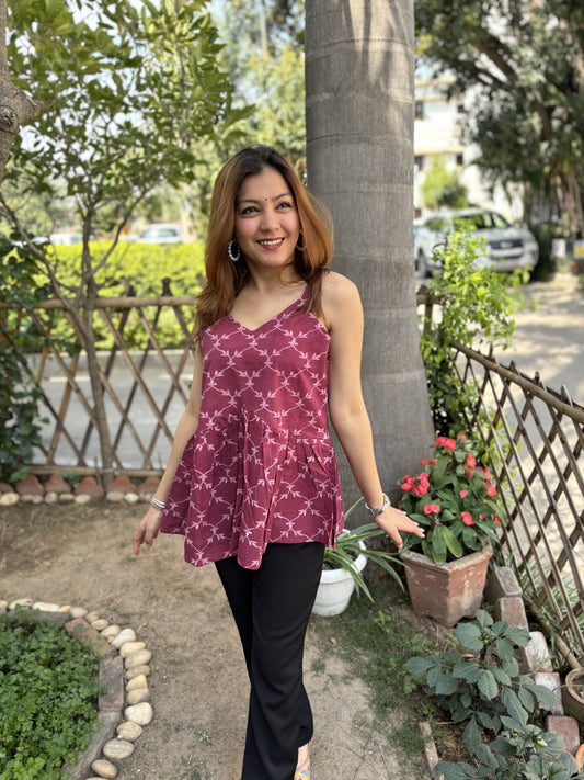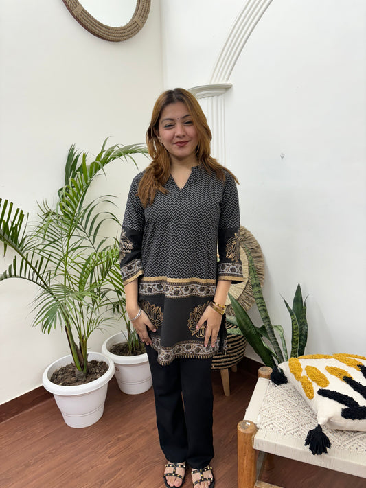 Indigo Ethnic Motif Flared Sleeve Kurti