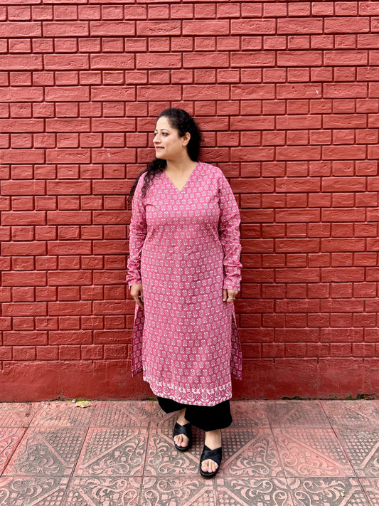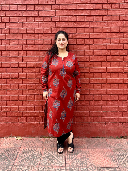 4.9 ★Maroon Paisley Handblock Cotton Kurti
