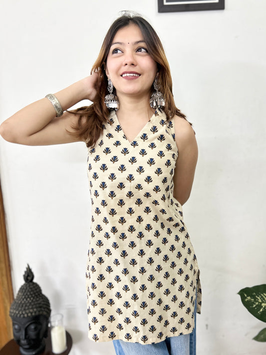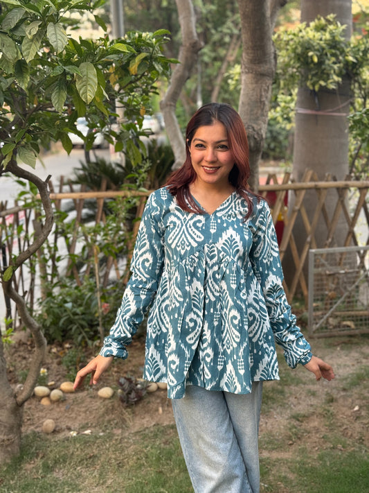 Indigo Ethnic Motif Flared Sleeve Kurti