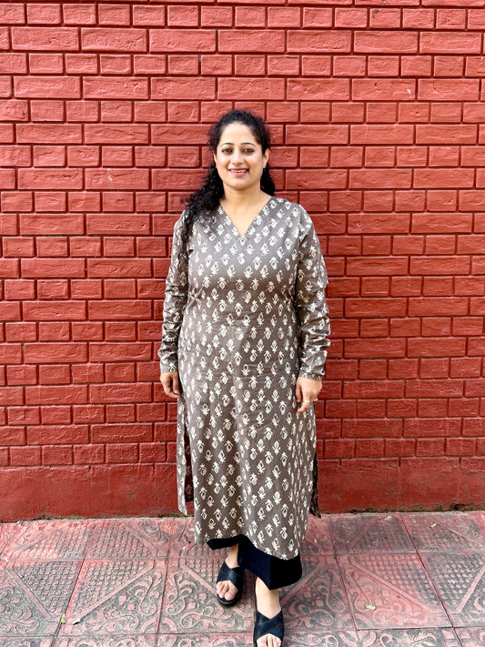 Mustard Hand-Sketch A-Line Kurta” with pockets ⭐