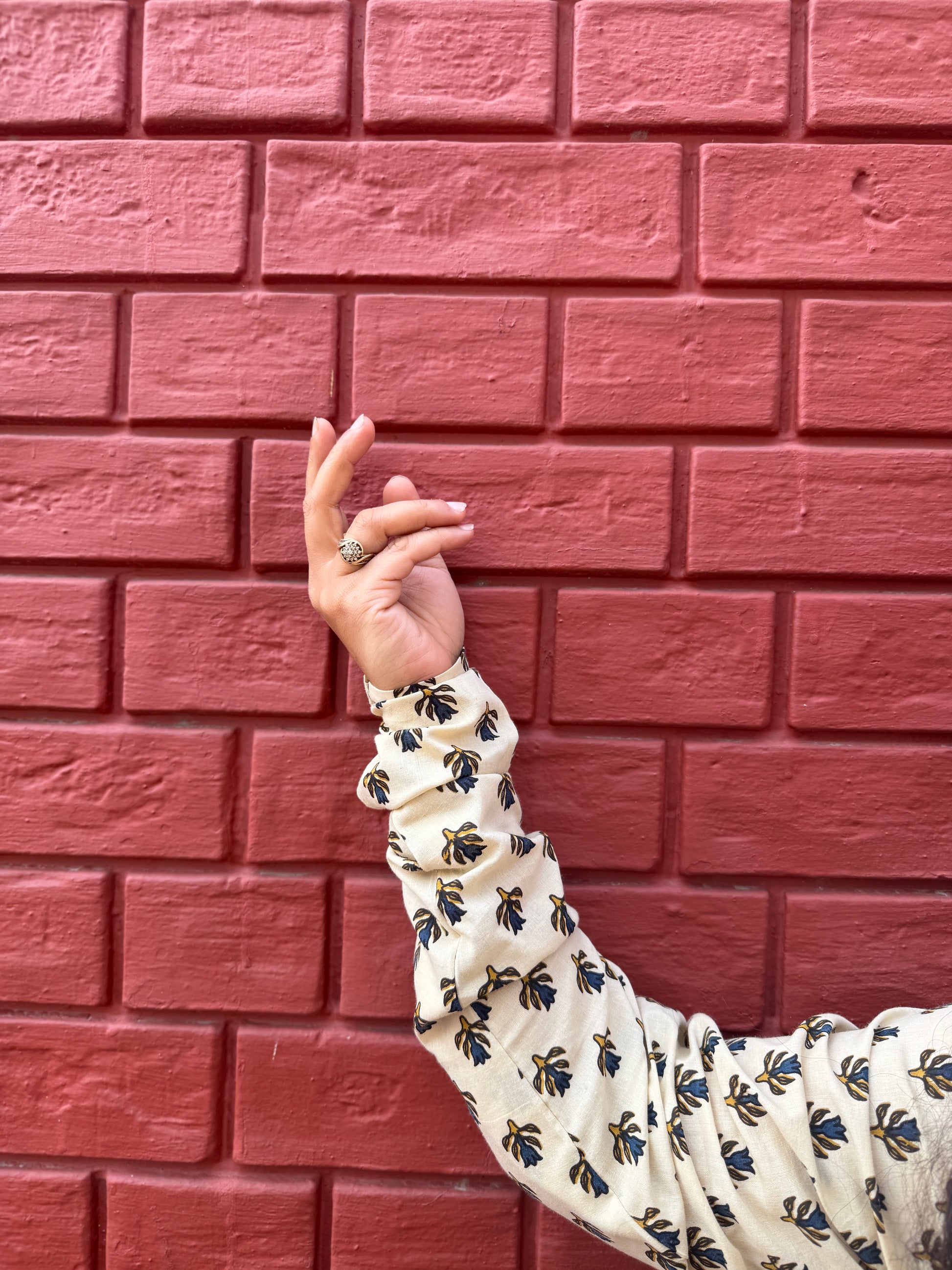 Soft beige pure cotton kurta with a subtle all-over leaf booti print and comfortable chudhi sleeves—easy, breathable, and perfect for everyday wear.