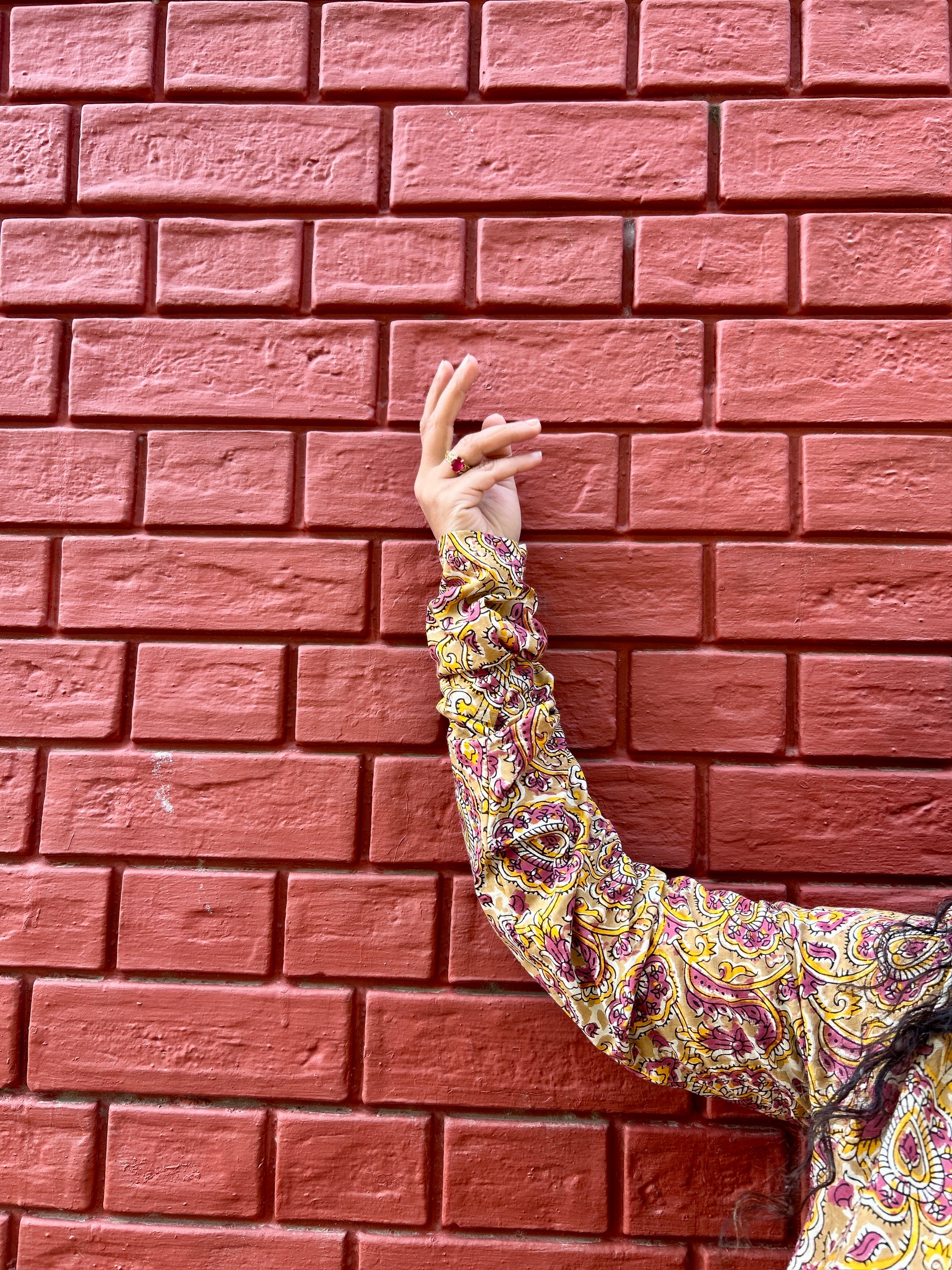 Beautifully adorned with an all-over paisley-inspired print. Designed with classic notched Ban neck. It also has chudhi sleeves.