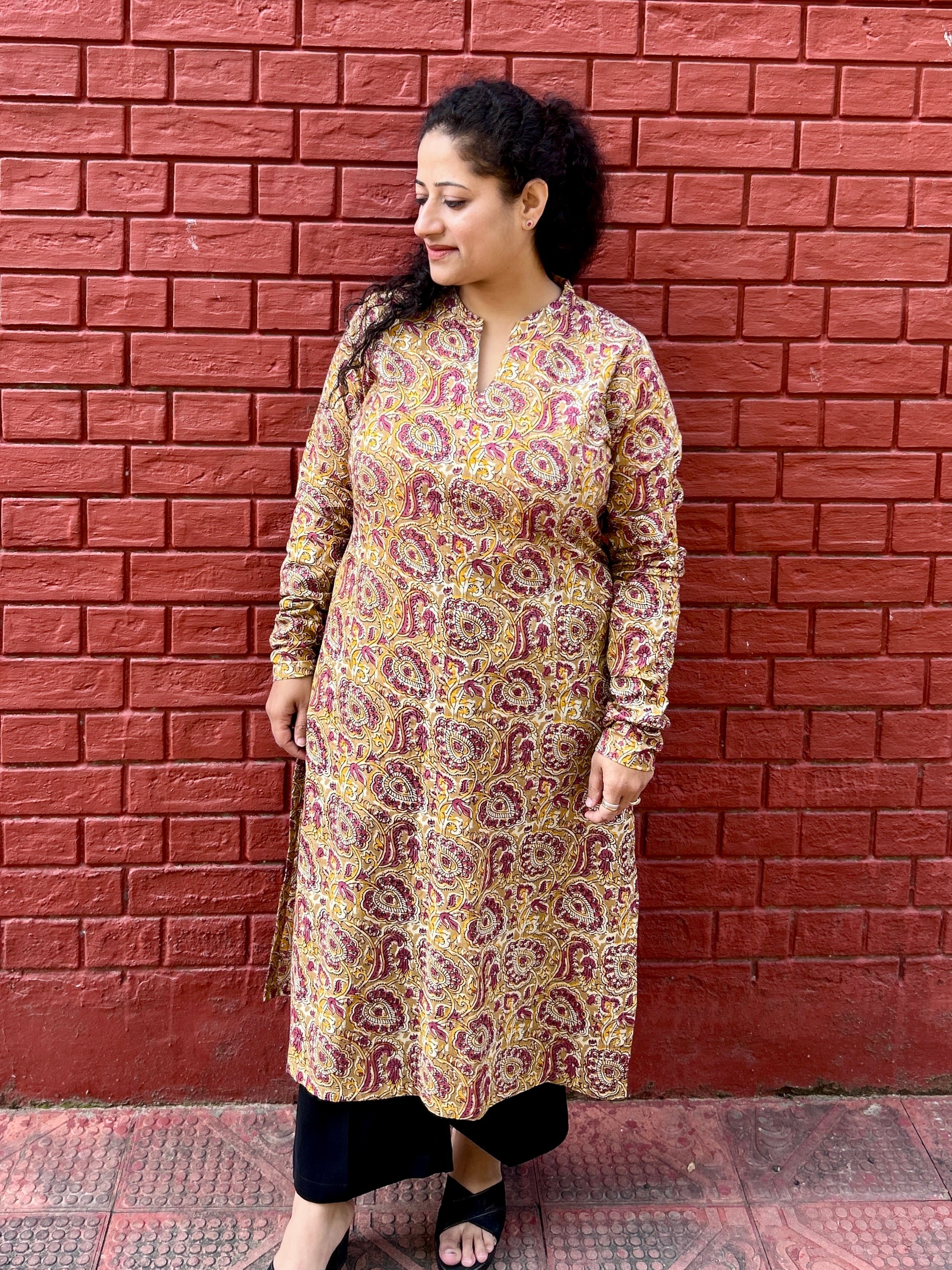 Mustard Paisley Bloom Straight Kurta